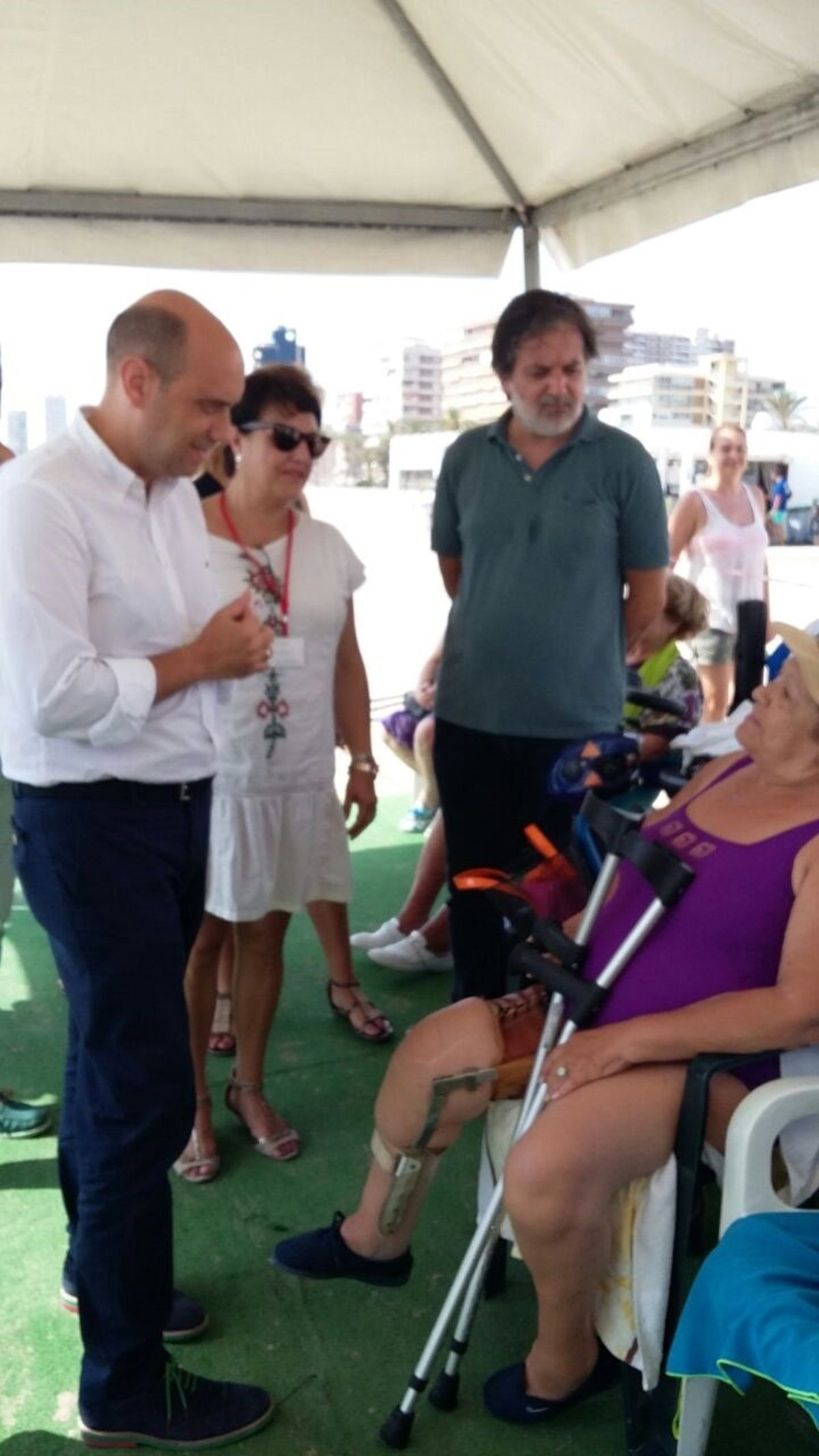 El primer edil ha visitado esta zona de baño accesible junto a la vicepresidenta provincial de Cruz Roja, Maite Berenguer, y la concejala de Turismo y Playas, Eva Montesinos, para comprobar "in situ" cómo se desarrolla este servicio que se presta desde julio a septiembre y saber cuál es la opinión de los usuarios.