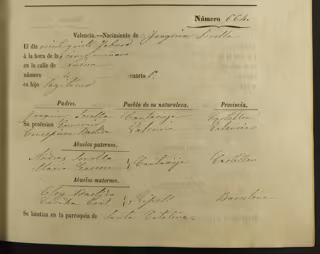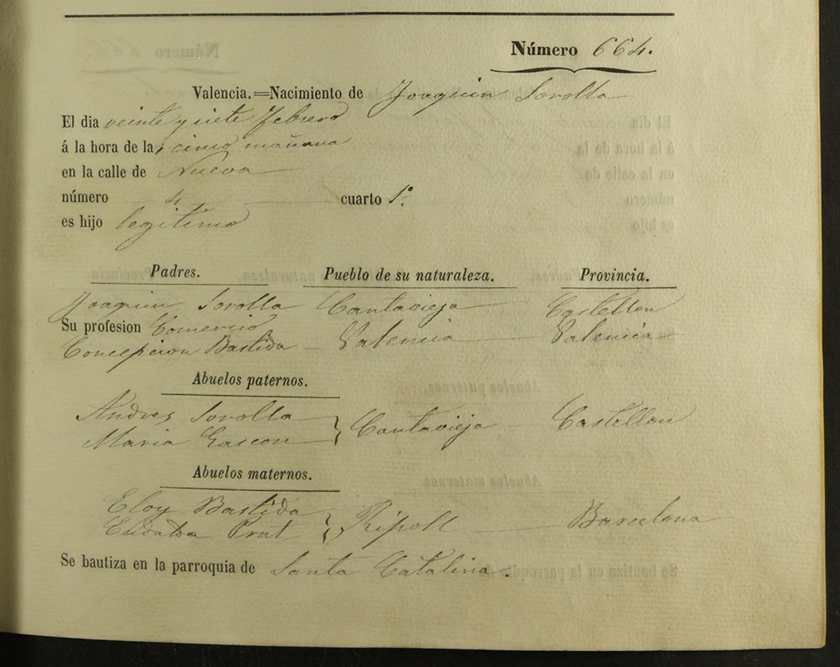 Archivo - Partida de nacimiento de Sorolla - AYUNTAMIENTO DE VALNCIA - Archivo