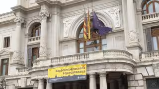Imagen del Ayuntamiento de Valncia con la pancarta en señal de duelo ante la pandemia de la Covid-19. - EUROPA PRESS - Archivo