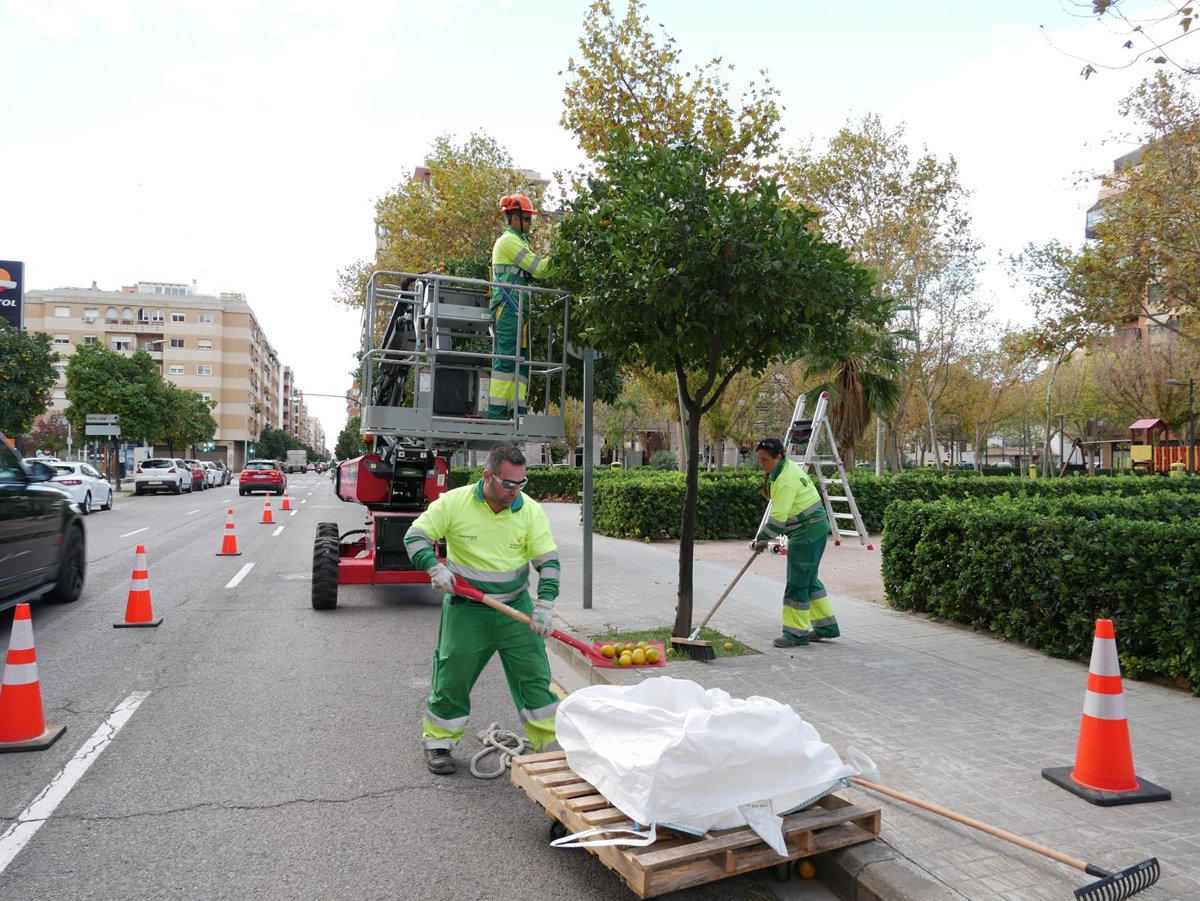 Las brigadas municipales del Servicio de Jardinería Sostenible y Renaturalización se hallan inmersas en las labores de recogida de frutos de las calles de Valncia, una tarea estacional que comenzó el pasado mes de noviembre y que, según ha explicado el vicealcalde y concejal de Ecología Urbana, Sergi Campillo, se ha reforzado este mes con dos nuevas máquinas para realizar el trabajo con mayor rapidez y eficacia.