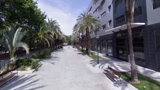 Tramo peatonal de la calle Gregori Gea de València, entre el edificio del IVO y el parque. - AYTO VALÈNCIA