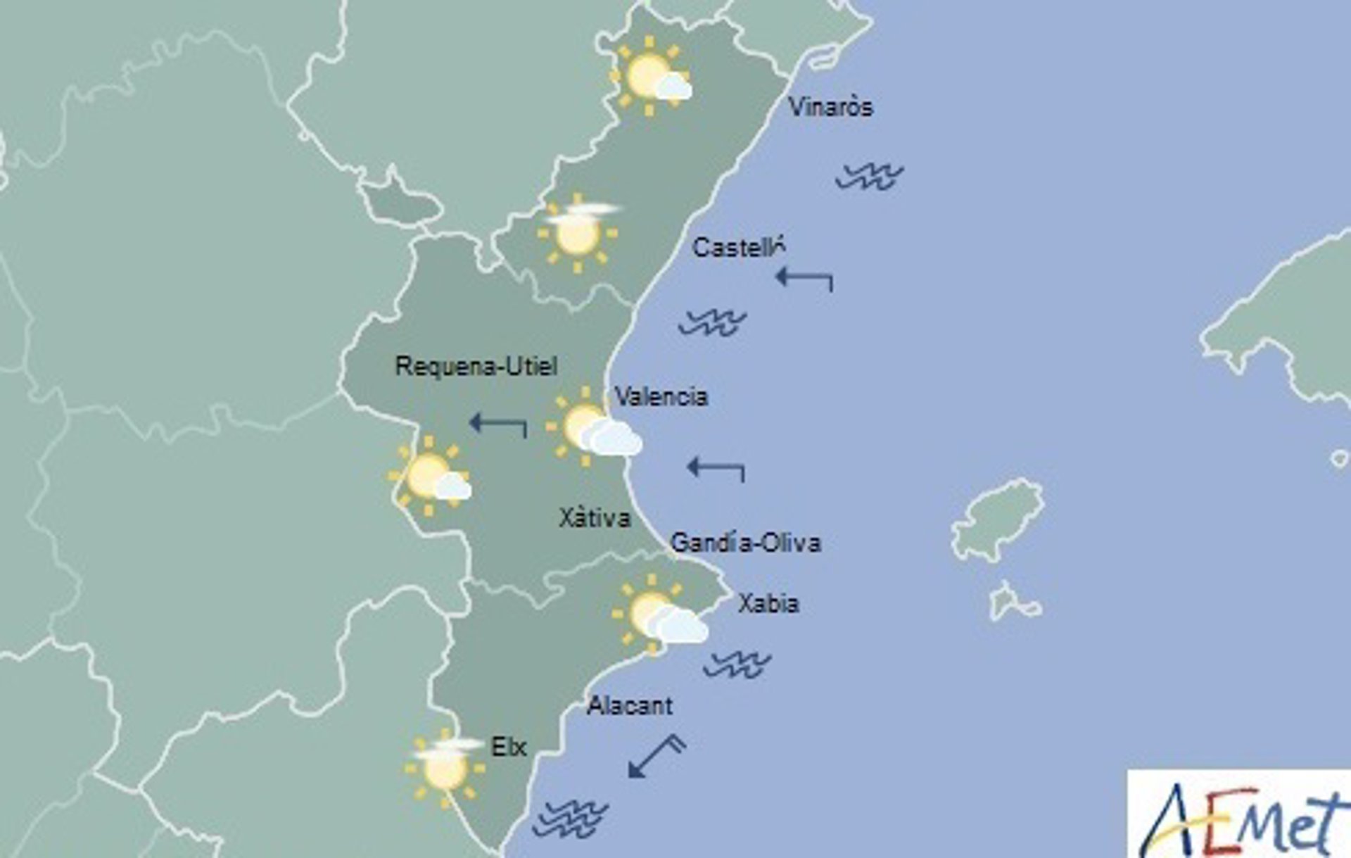 Los termómetros apenas variarán en zonas próximas a la costa, aunque la bajada de las máximas será más acusada en el interior y el sur de la provincia de Valencia, con un descenso de entre seis y ocho grados, según la predicción de la Agencia Estatal de Meteorología (Aemet).