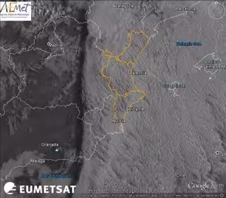 Así, el cielo estará nuboso predominando nubes medias y altas, que tenderán por la tarde a intervalos nubosos. A primeras horas de la mañana esta banda nubosa está dejando un borde nítido en el este de la Península que proyecta una sombra en la Meseta.