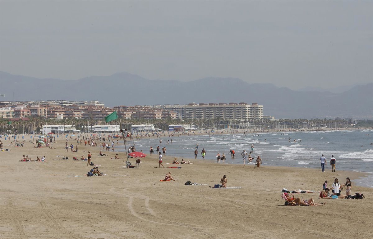 Bañistas en la Playa de la Malvarrosa, con bandera verde durante el primer día de la Fase 2, cuando se puede acceder a las playas de la misma provincia, isla o unidad territorial de referencia establecida en el plan de desescalada - Rober Solsona - Europa Press
