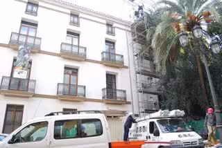 Igualmente, ha comenzado la pintura del edificio anexo de la Basílica en un color "azul valenciano" para que se diferencie y "distinga bien del templo". Una vez enlucida la fachada principal, está prevista la retirada de los andamios que fueron instalados para la rehabilitación de la cubierta de la Basílica, al haber concluido ya estos trabajos así como la instalación de los nuevos anclajes que sujetarán la lona del nuevo toldo.