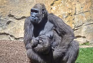 La evolución del bebé está siendo muy positiva y puede verse cómo se coge con fuerza al pelaje de la madre. Todo discurre bajo la atenta mirada de Mambie, el macho "espalda plateada" y padre, además de Ebo y Félix, de Virunga de 2 años y Pepe de 13 meses.