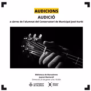 El alumnado del Conservatorio Municipal de Música José Iturbi actuará en la Biblioteca Municipal de Marxalenes Joanot Martorell este miércoles, 25 de enero, a las 18.00 horas, y en la biblioteca del Cabanyal - Canyamelar Casa de la Reina el 16 de febrero, a la misma hora.