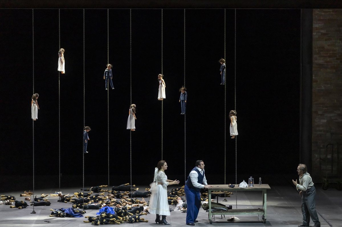 Su recreación traslada a los espectadores a una fábrica de muñecas de principios del siglo pasado que va mutando en otras estancias a lo largo de la representación y culmina con una bello punto final construido a base de luces y sombras. Esta referencia a un contexto proletario sirve de telón de fondo a un título de Verdi más íntimo, personal y burgués, alejado de otras obras monumentales y heroicas del compositor italiano.
