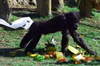 Los cuidadores de este grupo reproductor de gorilas han sido los artífices de esta celebración y para ello habían preparado cuidadosamente una apetitosa tarta llena de color con jugosas frutas como sandía, piña, manzana, gelatinas y bizcochos, ha sido su forma de agasajar al pequeño gorila valenciano.