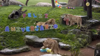 Tras la apertura, a las 10.15 horas, el rugido de los leones "ya anunciaba que algo pasaba porque ellos han sido los primeros en descubrir una vistosa tarta realmente apetitosa para el rey de los carnívoros, elaborada con sangrienta carne en el interior de bloques de hielo. Aunque el macho imponía su fuerza y guiado por su olfato accedía al manjar, las hembras también han aprovechado el festín", ha destacado el parque en un comunicado.
