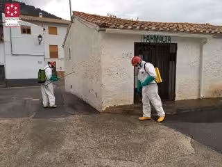 Al respecto, los bomberos han aplicado hipoclorito sódico en las zonas más sensibles, como el entorno de la farmacia, el ayuntamiento, los accesos a la iglesia, bancos o basureros.