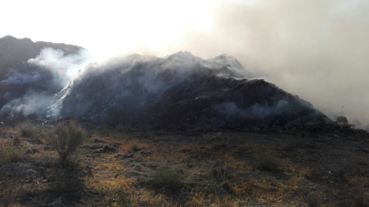 Para los trabajos se ha pedido la colaboración de la UTE de la planta de residuos de Fontcalent, que ha acudido con una pala retroexcavadora para remover los restos de poda mientras los bomberos los mojaban.