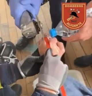 Los Bomberos del Servicio de Prevención Extinción de Incendios y Salvamento del Ayuntamiento de Alicante han intervenido este jueves para cortar el anillo del dedo de una persona a la que le había picado una avispa que le había provocado inflamación y generado dolor sin que se lo pudiera retirar.