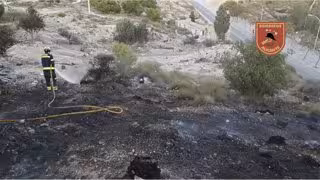 Igualmente, efectivos de la Policía Local han participado en las labores junto a seis bomberos, que se han localizado en una ladera de monte bajo y matorrales. Finalmente, tras más de una hora de trabajos, se ha logrado extinguir las llamas y asegurar la zona.