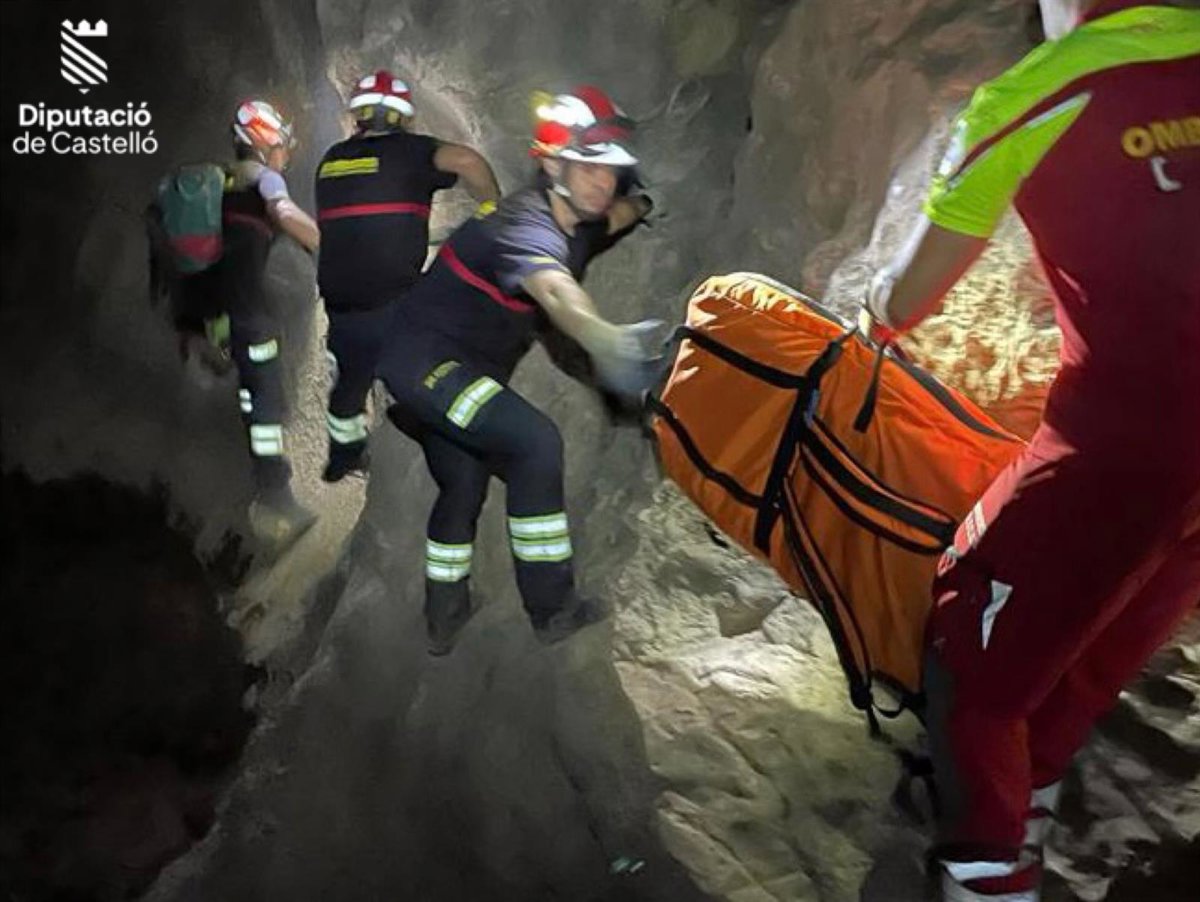 Efectivos del Consorcio Provincial de Bomberos de Castellón han permanecido toda la noche junto a una mujer lesionada en la zona del barranco de la Maimonada en Montanejos.