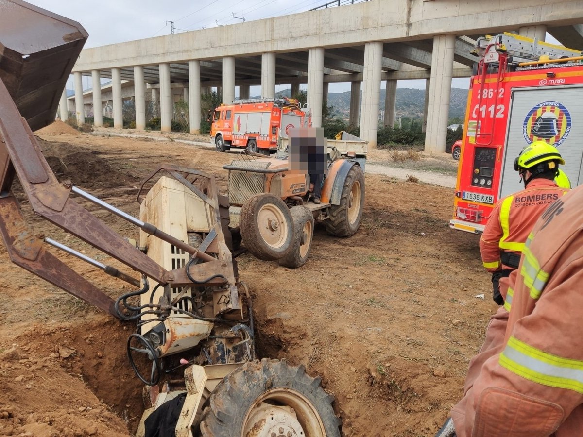 Efectivos de los parques de bomberos de Chiva y Paterna se han rescatado este martes al conductor de un tractor que había quedado atrapado en un agujero al volcar el vehículo, según ha informado el Consorcio de Bomberos de Valencia.