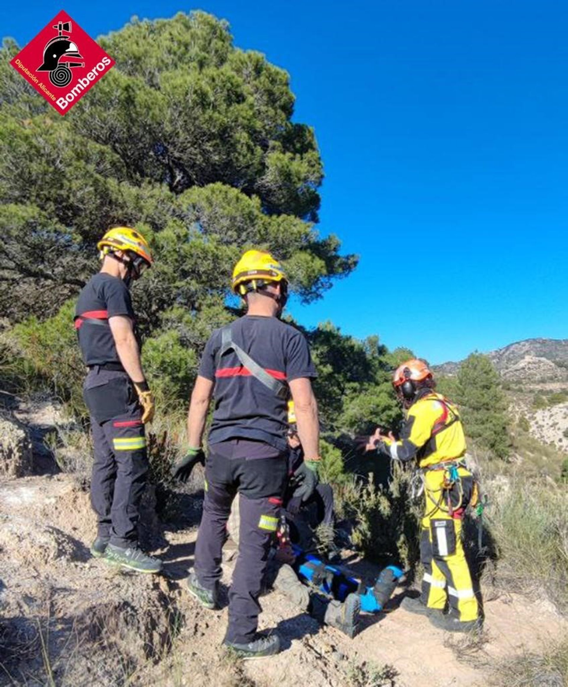En la intervención, que ha finalizado sobre las 13.45 horas, han participado una unidad mando jefatura, una bomba rural pesada, un cabo, cinco bomberos del parque de Ibi, un helicóptero de rescate Alpha 01 y el grupo rescate de montaña.
