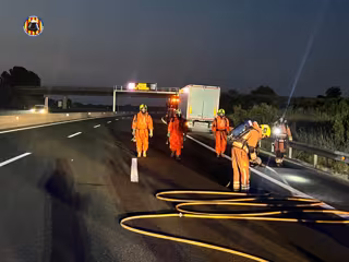 Efectivos del Consorcio Provincial de Bomberos de Valencia trabajan en una avería de un camión de mercancías peligrosas que transportaba ácidos y bases, entre ellos ácido clorhídrico, en la A-7 en Picassent, según han informado el citado organismo y el Centro de Gestión de Tráfico de Valencia.