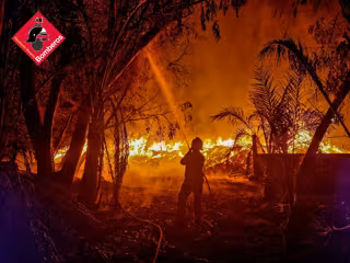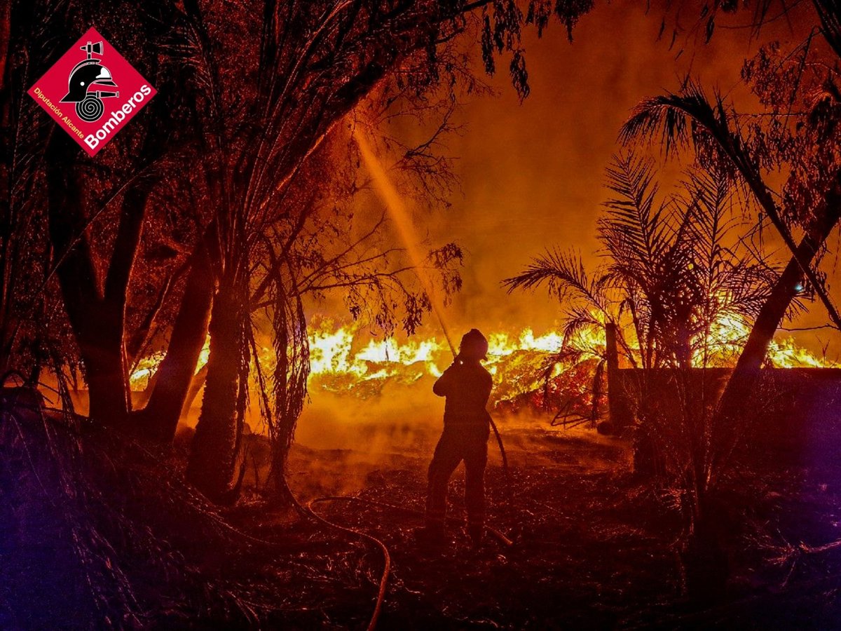El aviso se ha recibido sobre las 01.55 horas y hasta el lugar de los hechos se han movilizado una unidad mando jefatura (UMJ), una bomba urbana ligera (BUL), dos bombas nodrizas pesadas (BNP), un sargento, dos cabos, seis bomberos de los parques de Elche, Crevillent y las nodrizas de San Vicente y Almoradí, según ha informado el citado organismo.