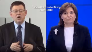 En el vídeo distribuido este miércoles en la nueva web de campaña www.bonig19.com, aparece una pantalla dividida a la mitad, donde se recoge en un lado la intervención de Ximo Puig en marzo de 2015 pidiendo el debate y, en la otra mitad, Isabel Bonig a día de hoy repitiendo literalmente las mismas palabras que utilizó el candidato socialista para exigir entonces un 'cara a cara'.