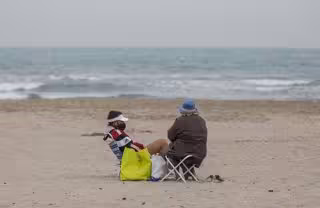 Dos personas sentadas con mascarilla en la playa la Malvarrosa en Valncia - Rober Solsona - Europa Press