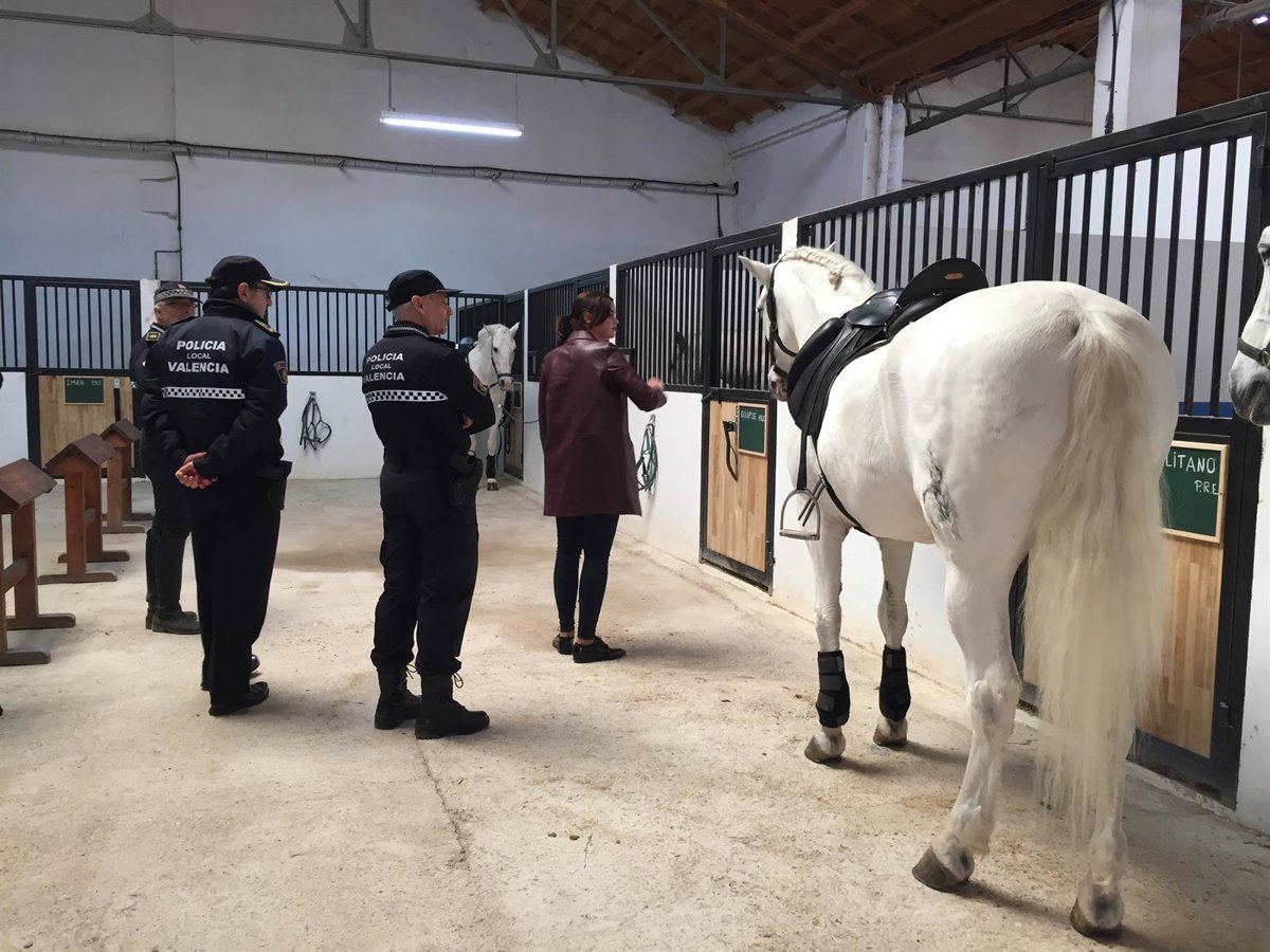 La concejala de Protección Ciudadana del Ayuntamiento de Valencia, Sandra Gómez, ha visitado este lunes las nuevas instalaciones de la Unidad de Caballería de la Policía Local en Poble Nou, donde ha anunciado que desde el Servicio de Policía se ha decidido, en el marco de la campaña de Navidad, que agentes a caballo patrullen el centro de la ciudad, "y no sólo se dediquen a funciones de protocolo o de imagen".