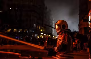 Un bombero durante la crem' de la Falla del Ayuntamiento, - Rober Solsona - Europa Press