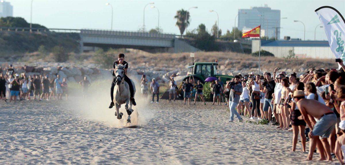 Durante las Corregudes, organizadas por la Associació Corregudes de Joies i Sant Antoni Abat de Pinedo y en colaboración con el Ayuntamiento de Valncia, un total de 12 caballos han competido al galope en la arena de la playa.