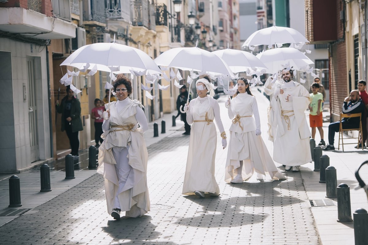 A lo largo de la mañana, el teatro de calle ha venido de manos de la compañía castellonense Visitants. La 'performance' ha contado con el colaborador habitual de las actividades paralelas del centro Vicente Arlandis y del artista, docente y coordinador de los talleres de especialización Dileg Obert, Mario Montoya, que forman parte de la vertiente formativa del teatro, ha explicado el mismo en un comunicado.