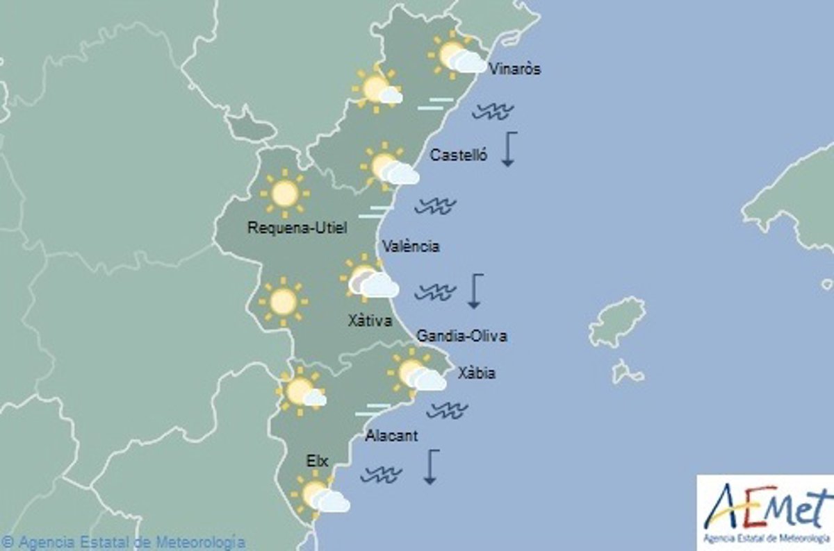 La caída de las temperaturas iniciada este viernes en la Comunitat Valenciana continuará este domingo, en el que no se prevé que ningún observatorio de la Agencia Estatal de Meteorología (Aemet) ubicado en este territorio supere los 20 grados, según la predicción meteorológica de este organismo consultada por Europa Press. Esta es una circunstancia que no ocurría desde el pasado viernes.
