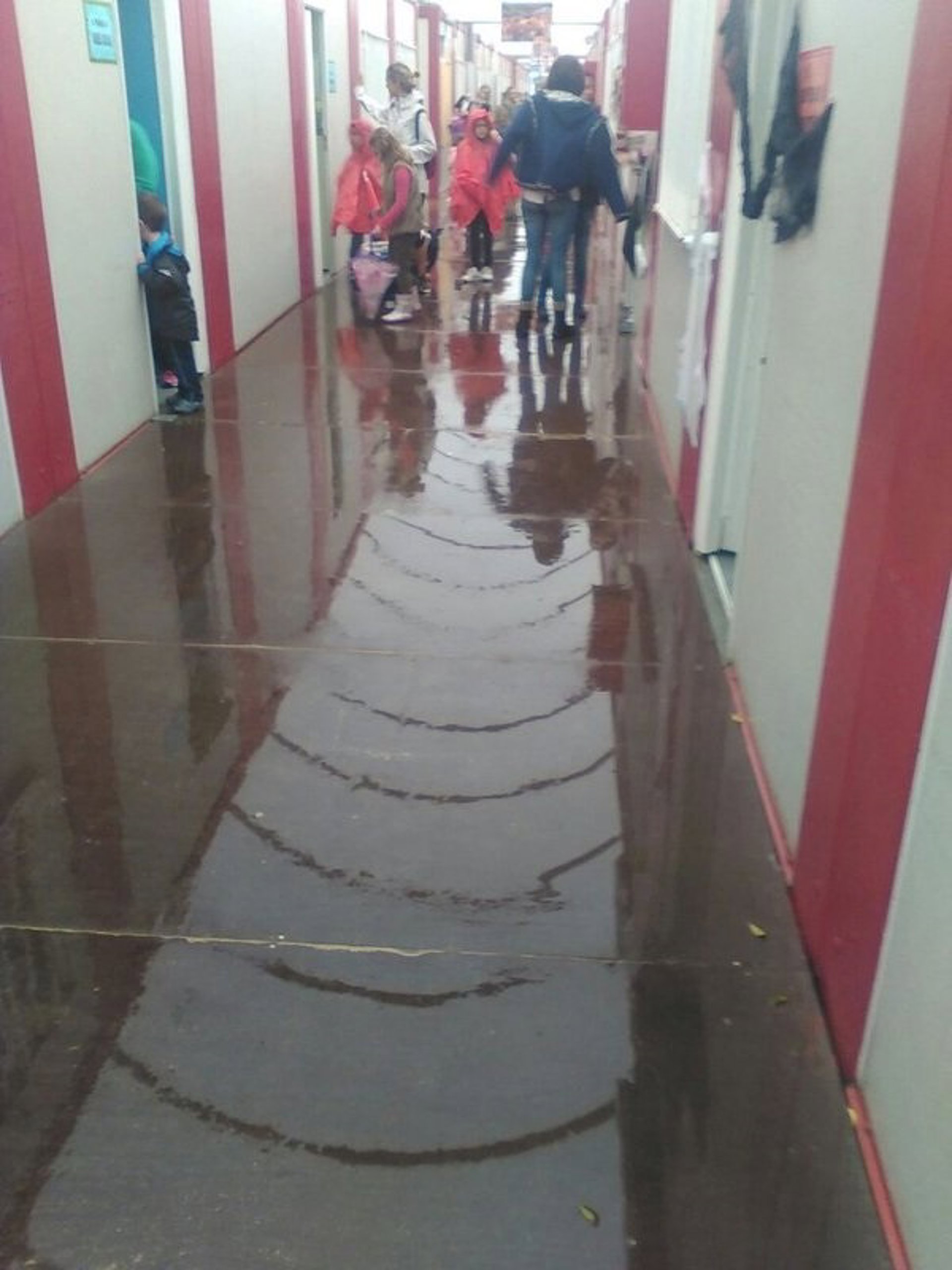 La portavoz ha señalado que a primera hora de la mañana de este lunes el colegio ya estaba mojado como consecuencia de las precipitaciones y ha destacado que cuando la lluvia se ha intensificado el agua ha entrado en las aulas a chorros por las paredes y entre las juntas de los barracones. Además, ha indicado que se ha acumulado en la cubierta de las aulas y de los pasillos.