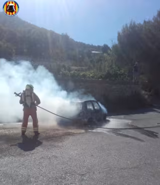 Prácticamente a la misma hora, el Parque de Bomberos Voluntarios de Vallada ha intervenido en el incendio de otro turismo en la Font de la Figuera, donde también se ha procedido a limpiar la calzada.