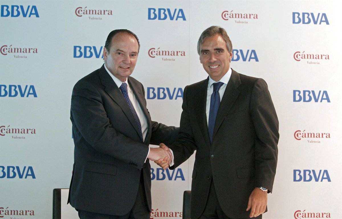 El presidente de la Cámara de Comercio de Valencia, José Vicente Morata, y el director de BBVA para España y Portugal, Juan Asúa, han firmado este jueves un convenio de colaboración por el que la entidad pondrá a disposición de las empresas valencianas, especialmente las pymes, líneas de financiación por un importe de 1.000 millones de euros para impulsar el tejido empresarial de la Comunitat.