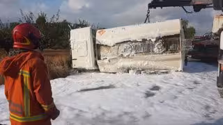 Según bomberos, el camión transportaba 4.500 litros de gasoil de reparto a domicilio. Hasta el lugar se han movilizado bomberos de Xtiva y el jefe del sector, que están en prevención, mientras una grúa ha levantado el camión para poder realizar el trasvase de la carga y retirarlo.