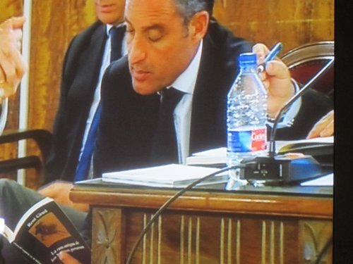 La lectura del libro por parte de Camps --Costa por su parte lee un periódico-- se produce durante la sesión del juicio de este lunes en la que el ministerio público continua con la exhibición al jurado de varios documentos relacionados con los acusados.