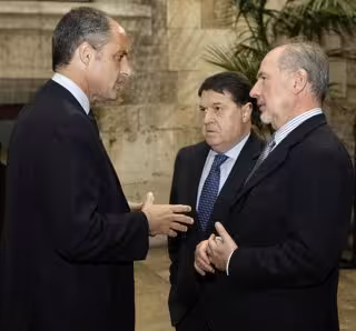 El presidente de la Generalitat Valenciana, Francisco Camps, recibió este jueves en audiencia al presidente ejecutivo y al vicepresidente ejecutivo de Bankia, Rodrigo Rato y José Luis Olivas, respectivamente. La reunión comenzó alrededor de las 13.45 horas en el Palau de la Generalitat y continúa en la actualidad.