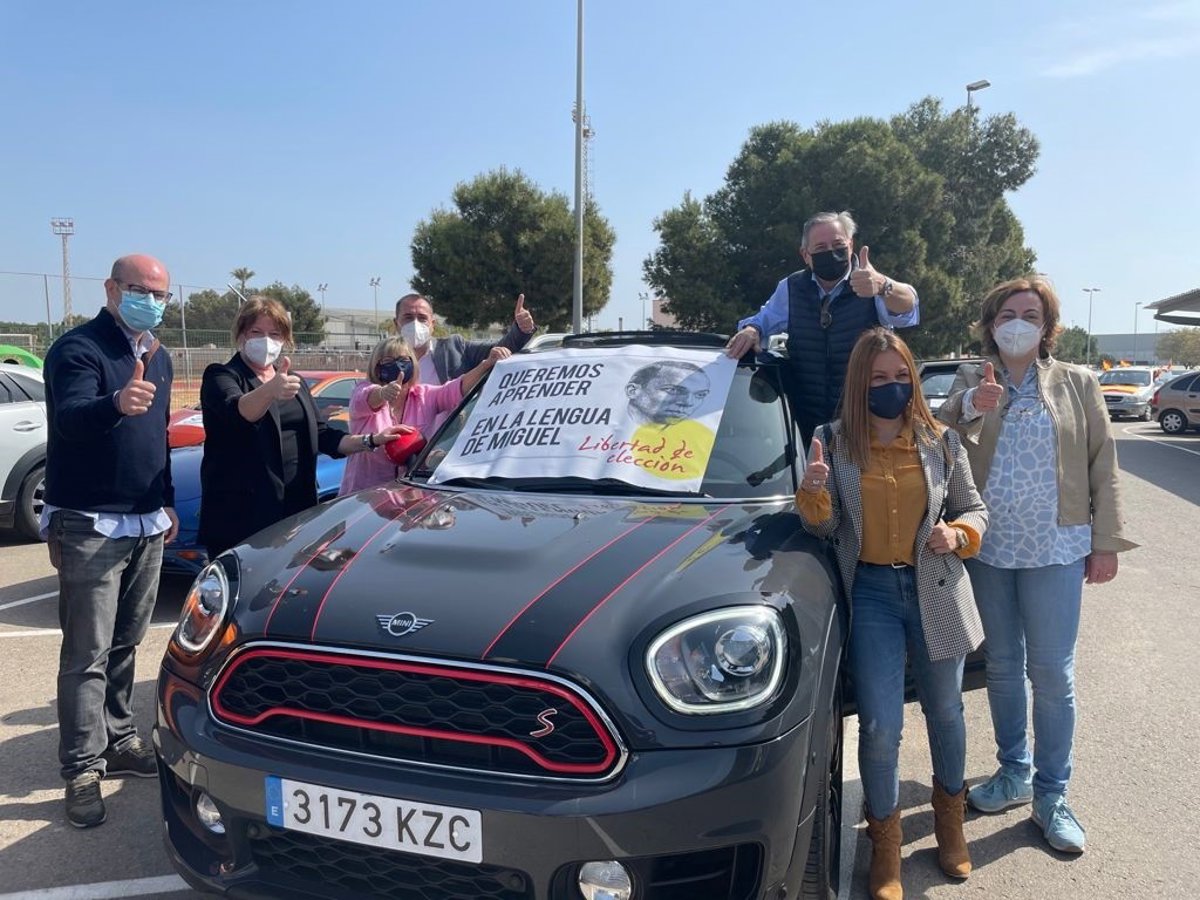 Durante el acto, coches y tractores han recorrido las calles con carteles con mensajes como 'Todos los niños hispanohablantes de la CV tienen derecho a estudiar en español' y 'Queremos aprender en la lengua de Miguel', en alusión al poeta Miguel Hernández.