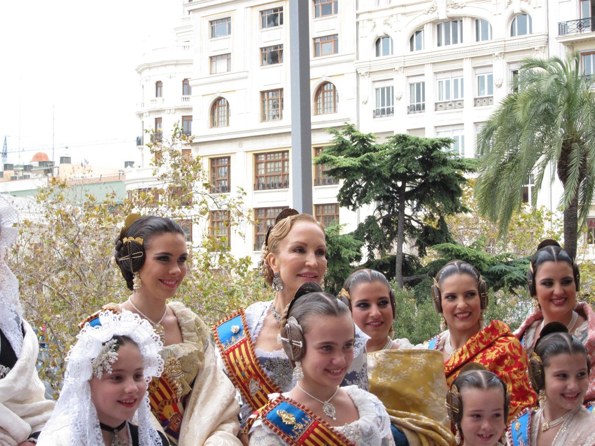 Junto a las Falleras Mayores de Valencia 2011, la joven Laura Caballero y la niña Carmen Monzonís, estaban esta jornada en el Balcón principal del consistorio, la Bellea del Foc de Alicante, María Guijarro, y la Bellea del Foc Infantil, Chloe Nicolás. Además, se ha podido ver a la famosa Carmen Lomana vestida de fallera. Esta última ha acudido en representación de la comisión Avenida de Francia de la que es Fallera Mayor en 2011.