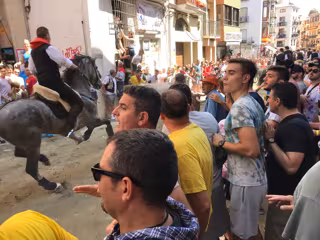 La calle Colón de Segorbe (Castellón) ha vibrado este lunes con una tensa primera Entrada de Toros y Caballos de 2019, en la que a mitad de recorrido, un astado ha embestido a un caballo y ha hecho caer al suelo a uno de los jinetes, popularmente llamados 'caballistas'.