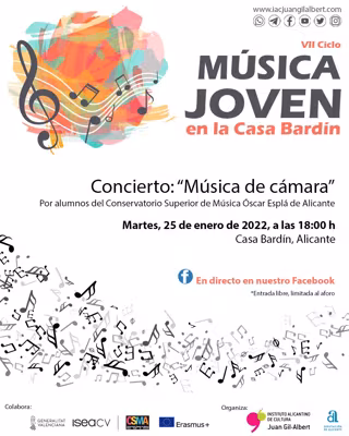 El Instituto Alicantino de Cultura Juan Gil-Albert ha vuelto a programar los ciclos musicales organizados junto al Conservatorio Óscar Esplá en la Casa Bardin. La primera sesión tendrá lugar el lunes, 24 de enero, con una conferencia enmarcada en el programa de Musicología y el martes comenzará Música Joven con un concierto a las 18.00 horas.