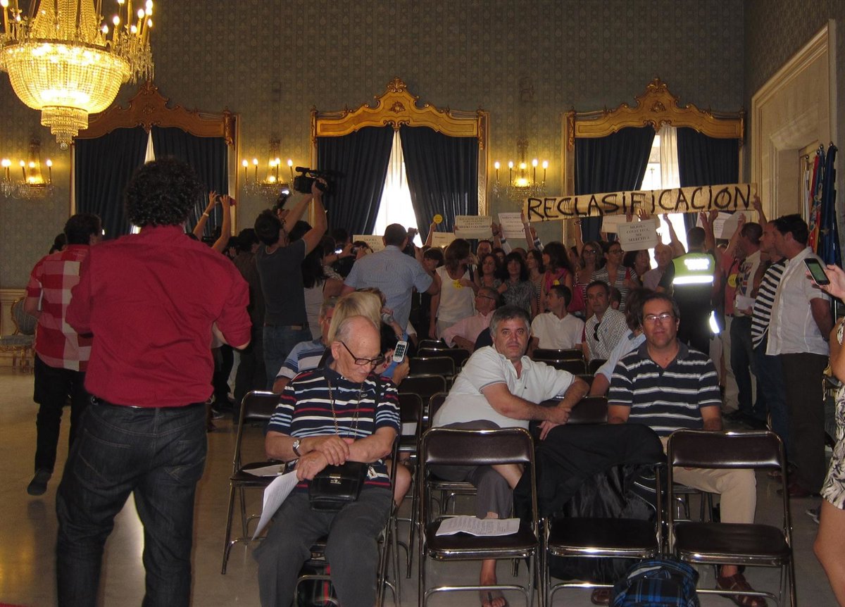 Decenas de integrantes de la junta de personal del Ayuntamiento de Alicante han protestado este viernes durante la celebración del pleno de la ciudad para criticar la falta de una información "veraz y concreta" sobre la reclasificación de los puestos de trabajo por parte del equipo de Gobierno, tras lo que la alcaldesa, Sonia Castedo, ha desalojado la sesión después de haber realizado dos avisos al respecto.