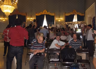 Posteriormente, todos ellos se han concentrado en la plaza del consistorio y han continuado con su protesta. Entre las personas que han tenido que dejar la sesión se encontraban asesores de varios grupos de la oposición, que han expresado sus quejas por esta decisión, así como el próximo concejal de EU, Daniel Simón, que sustituirá al edil Rogelio González.
