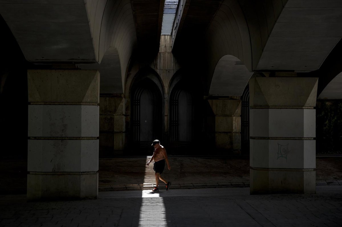 Archivo - Un hombre camina sin camiseta en el antiguo cauce del río Turia - Rober Solsona - Europa Press - Archivo