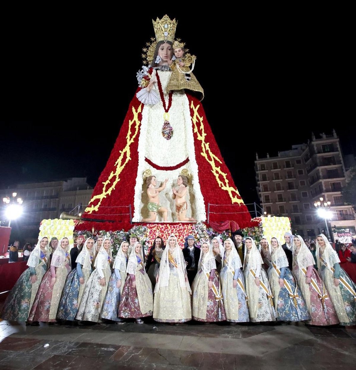 La alcaldesa de València junto a la Fallera Mayor de València, Carmen Prades, y su Corte de Honor, al finalizar la Ofrenda de 2026 - AYUNTAMIENTO DE VALÈNCIA