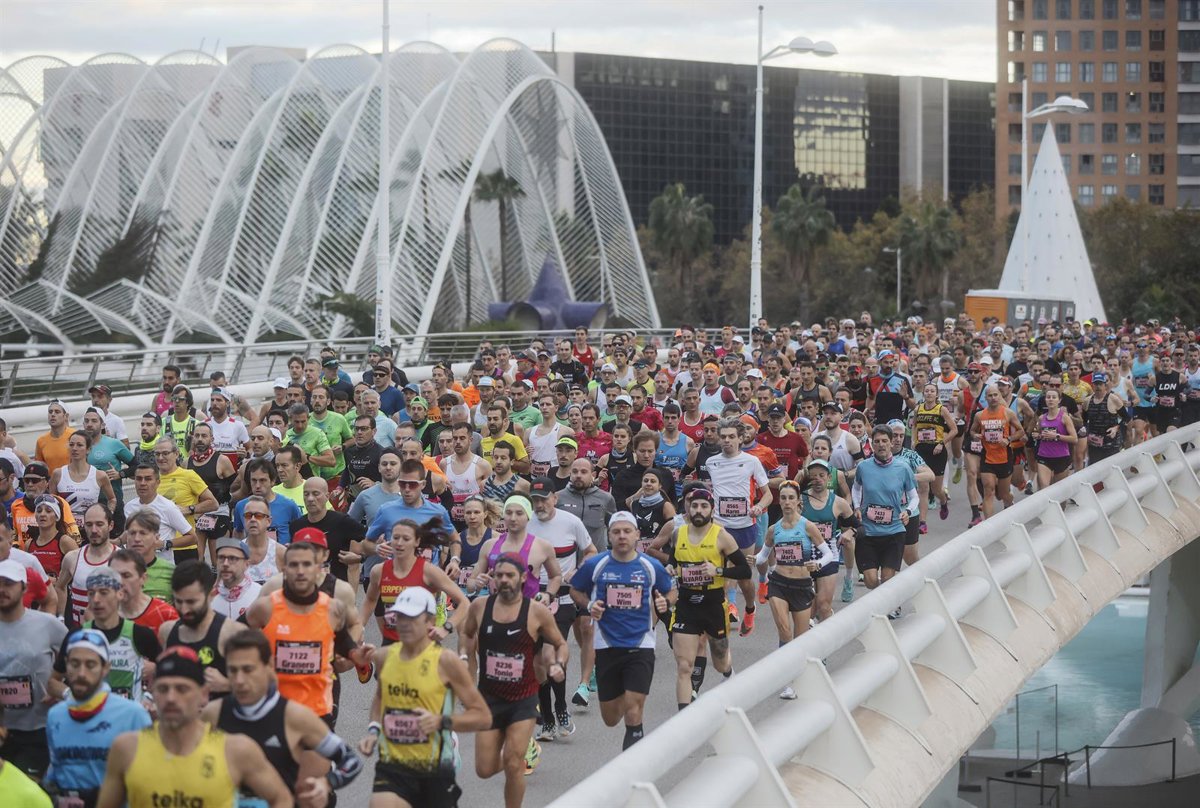 Archivo - Corredores participan en el Maratón de Valencia Trinidad Alfonso, en el Puente de Monteolivete, a 4 de diciembre de 2022, en Valencia, Comunidad de Valencia, (España). - Rober Solsona - Europa Press - Archivo