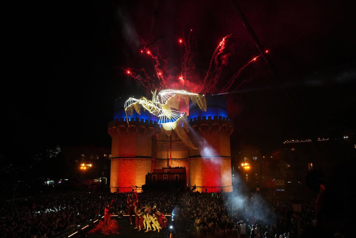 Imagen de la Crida de las Fallas 2026 en la ciudad de València. - Eduardo Manzana - Europa Press