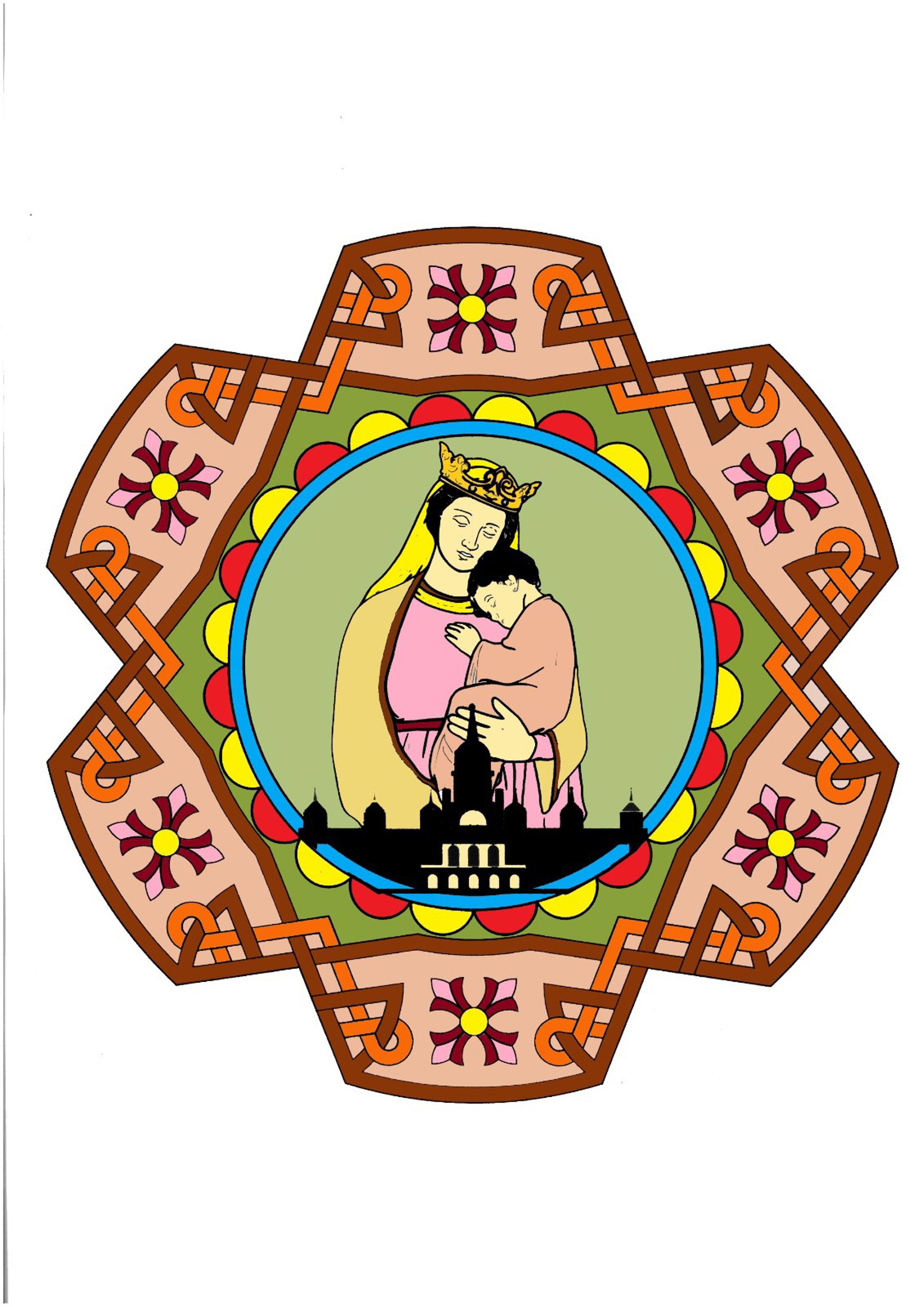 Boceto de la alfombra floral con la imagen de la Virgen y el Niño - ARZOBISPADO VALENCIA