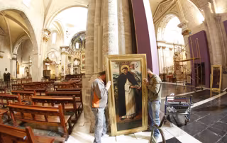 La Catedral de Valencia ha iniciado este miércoles la instalación, en la parte derecha de la nave central del templo, de una exposición temporal con más de una treintena de obras de arte, pinturas y orfebrería desde el siglo XIV al XVIII del Museo Catedralicio con motivo de las obras de reconstrucción de este espacio, que se prolongarán a lo largo del próximo año, ha informado el Arzobispado.