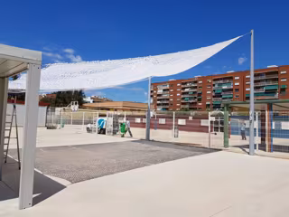 A la hora de instalar el toldo, los técnicos municipales han tenido en cuenta las características especiales de los usuarios de este recinto y en su seguridad, por lo que se ha dispuesto una zona de sombra de material ligero reticulado no impermeable, con el fin de evitar tanto desprendimientos por vientos fuertes o lluvia intensa como la retención en superficie.