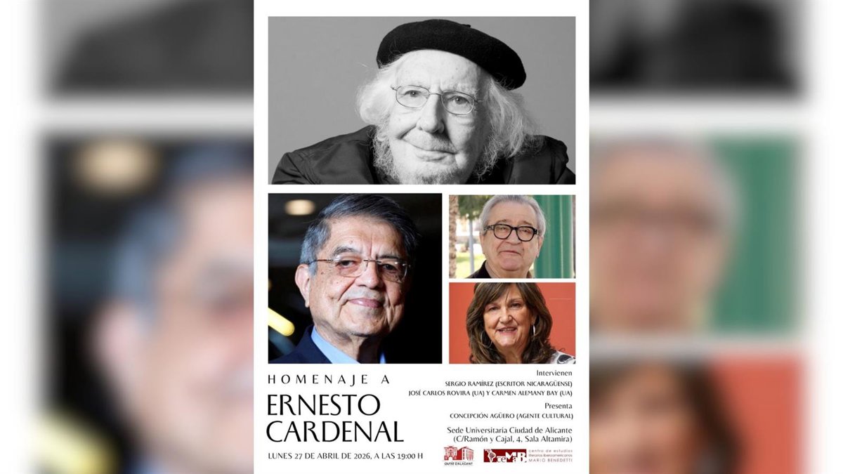 El Centro de Estudios Literarios Iberoamericanos Mario Benedetti (CeMaB) de la Universidad de Alicante (UA) rendirá homenaje al poeta Ernesto Cardenal con una mesa redonda el lunes 27 de abril a las 19.00 horas en la Sala Altamira de la Sede Universitaria Ciudad de Alicante.